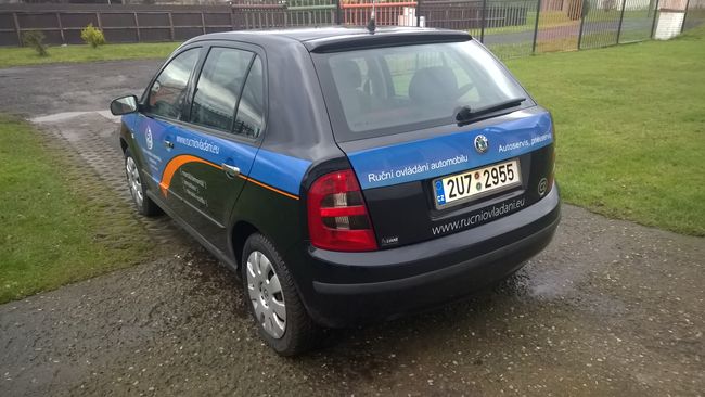 Po dobu opravy automobilu, Vám půjčíme osobní automobil Škoda Fabia s ručním ovládáním. Plyn můžete ovládat